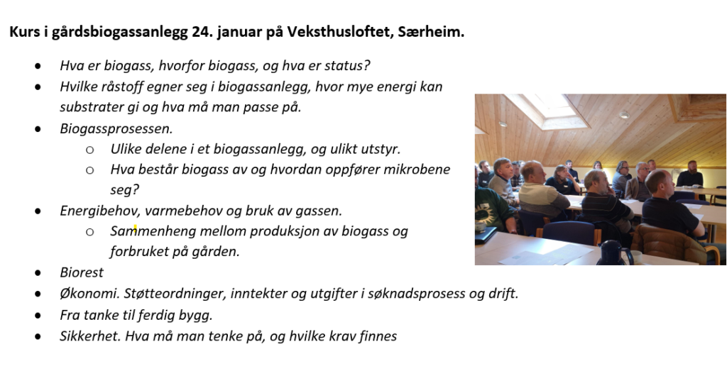 Rogaland biogassnettverk inviterer til biogasskurs 24. januar og studietur 25. januar